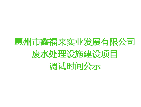 惠州市鑫福來實業發展有限公司 廢水處理設施建設項目調試時間公示