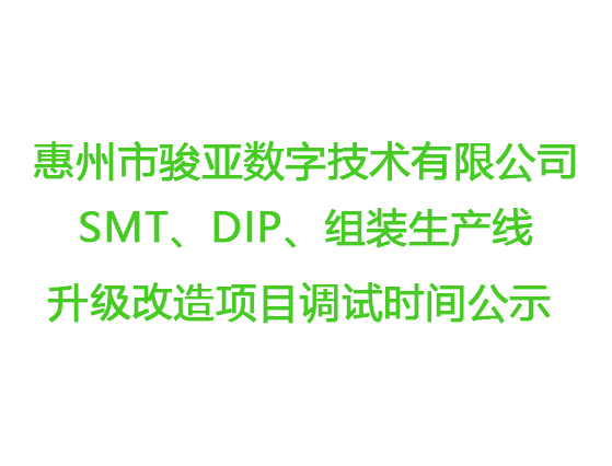 惠州市駿亞數字技術有限公司SMT、DIP、組裝生產線升級改造項目調試時間公示